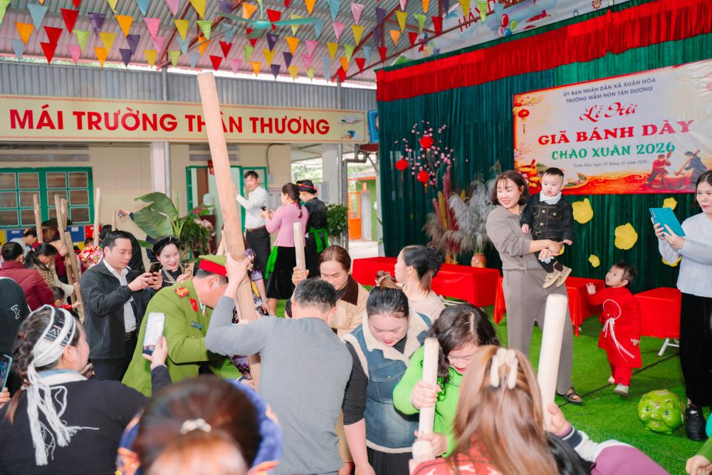Sáng ngày 05/02/2026, Trường Mầm non Tân Dương long trọng tổ chức “Lễ hội giã bánh dày – Chào xuân 2026” trong không khí vui tươi, phấn khởi của những ngày đầu năm mới. Đây là hoạt động ý nghĩa nhằm chào mừng Tết Nguyên đán, đồng thời góp phần tuyên truyền, giáo dục cho trẻ về những giá trị văn hóa truyền thống tốt đẹp của dân tộc Việt Nam nói chung và nét đẹp văn hóa của đồng bào dân tộc Tày trong phong tục làm bánh dày nói riêng.